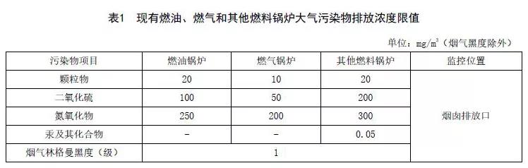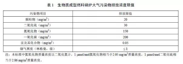 生物質(zhì)鍋爐排放限值一覽表